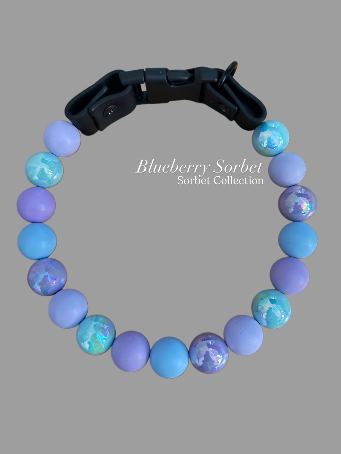 Cool, colorful, and bursting with flavor. The Blueberry Sorbet collar combines lush purples and bright blues with shimmering iridescent highlights. Designed for the bold and playful pup, this collar adds a pop of sweetness to any outfit while staying effortlessly stylish 🫐💜